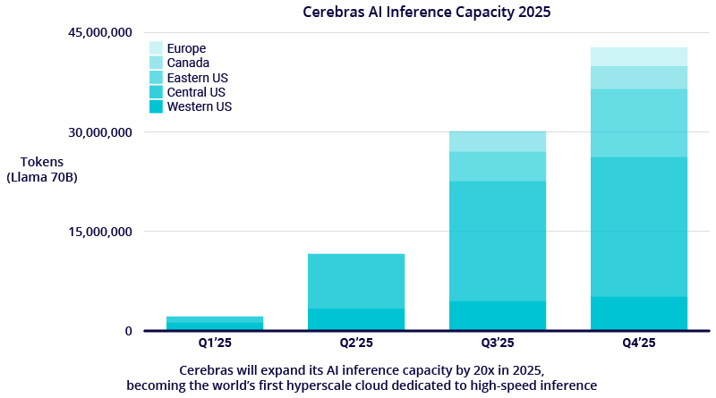 And at AI speed, Cerebras has unleashed new momentum in the market. This week, the company announced a massive expansion of its inference capacity, adding six new AI inference data centers across North America and Europe. Powered by thousands of Cerebras CS-3 systems, this network will deliver over 40 million Llama 70B tokens per second, marking a significant leap forward in AI compute.